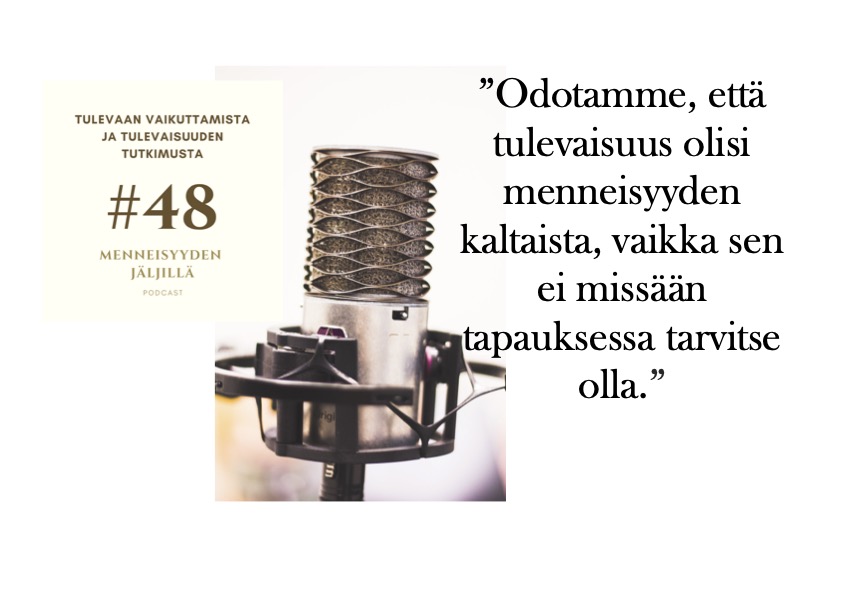 Tämä on podcast menneisyydestä, historiasta ja eri tavoista, joilla menneisyys meitä ympäröi. Näihin raameihin nähden jakson aihe poikkeaa edellä mainitusta, sillä tässä jaksossa keskitymme menneisyyden sijaan tulevaisuuteen.