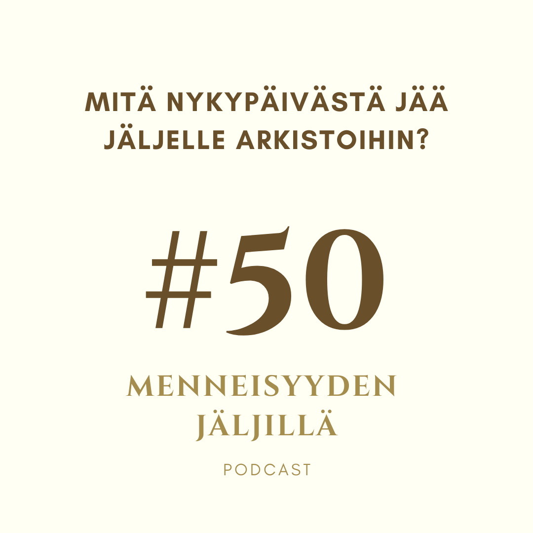 Jaksossa pohditaan arkistojen merkitystä kulttuuriperinnön ja tulevan historiantutkimuksen kannalta. Miten nykypäivän digikulttuuria ja järkyttävän suurta tietomäärää on mitenkään mahdollista tallettaa tulevaisuutta ajatellen? Mitä siis nykypäivästä jää jäljelle? Puhumme konkreettisesti arkistojen tärkeästä toiminnasta ja siitä, mitä eri tarkoituksia arkistolaitokset palvelevat. Ovatko arkistot täynnä kuivia ja tylsiä asiakirjoja vai löytyykö päällepäin harmaan byrokraattisesta materiaalista kiehtovia tarinoita ja pilkahduksia entisajan elämästä? Keskustelemme myös vanhojen aineistojen digitoinnista sekä siitä, millä tavoin kuka tahansa voi halutessaan arkistoja hyödyntää menneisyyteen tutustuessa.Jakson vieraaksi sain Kansallisarkiston kehittämispäällikkö Maria Kallion, joka on ehdoton asiantuntija vastaamaan kysymyksiin arkistoista sekä tulevaisuuden tiedon tallentamisen prosesseista.