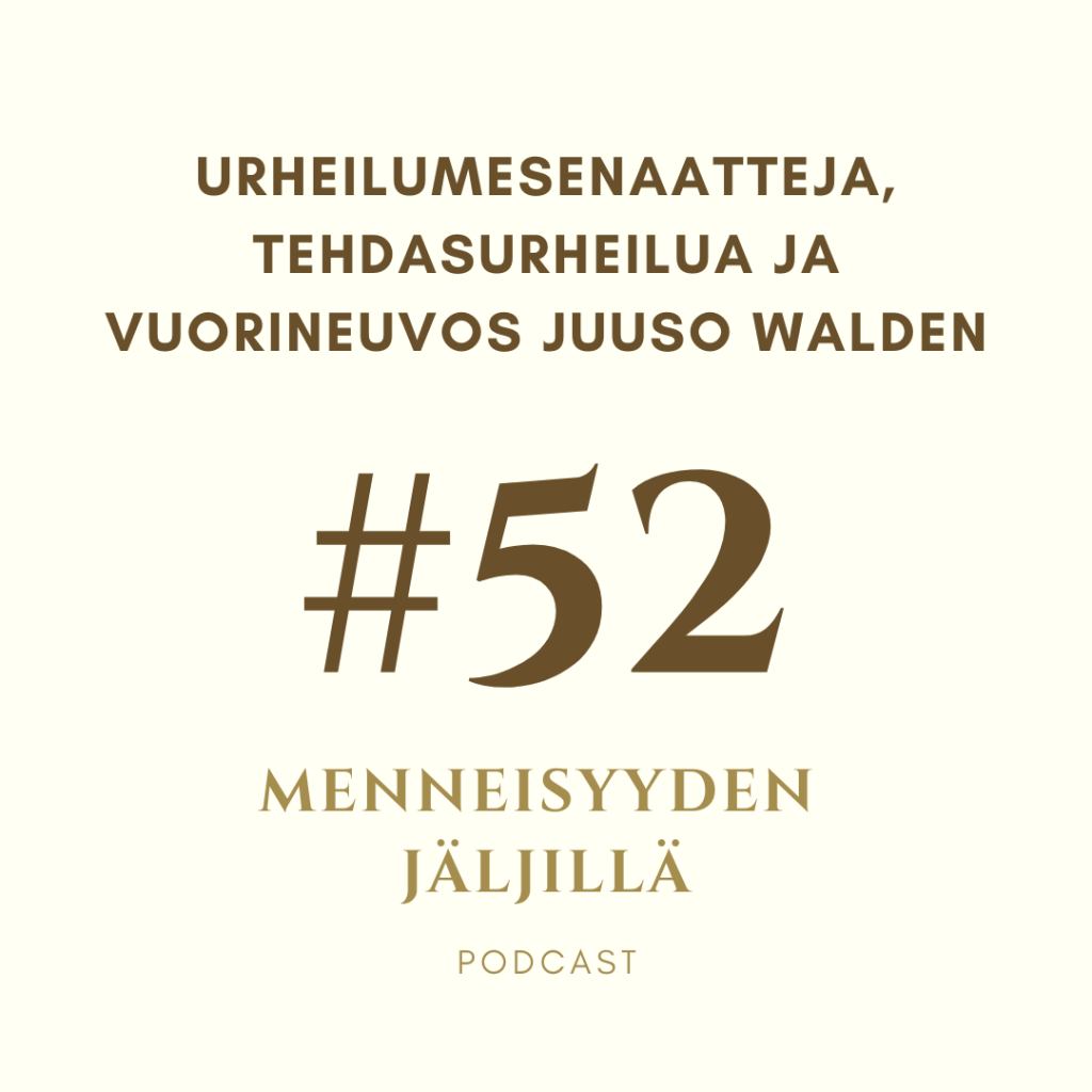 Jaksossa on aika palata pelikentillä ja vetää urheilukamppeet päälle, kun käsittelemme urheiluhistoriaa uudesta näkökulmasta. Urheiluhistoria on täynnä mitä mielenkiintoisempia henkilötarinoita, ja tässä jaksossa kuulemme Suomen historian merkittävimmän urheilumesenaatti Juuso Waldenin (1907–1972) tarinan. Keskustelemme Juuson merkityksestä erityisesti tehdasurheilun ja urheilun rahoituksen näkökulmasta, sillä Juuson perintö elää edelleen erityisesti tehdaspaikkakuntien urheiluseurojen toiminnassa. Kuulemme jaksossa mielenkiintoisia tarinoita Juusosta, hänen isästään, Englantilaista yhtiötä vastaan käydyistä Reed-otteluista sekä yhtiön urheiluohjelman avulla menestyneistä aikansa huippu-urheilijoista. Jakson vieraana on pitkän linjan urheilutoimittaja ja lukuisia urheiluhistorioita työstänyt tietokirjailija Kalle Virtapohja, joka julkaisi vuonna 2021 kirjan nimeltä ”Juuso Walden – Urheilumies ja viimeinen patruuna”.