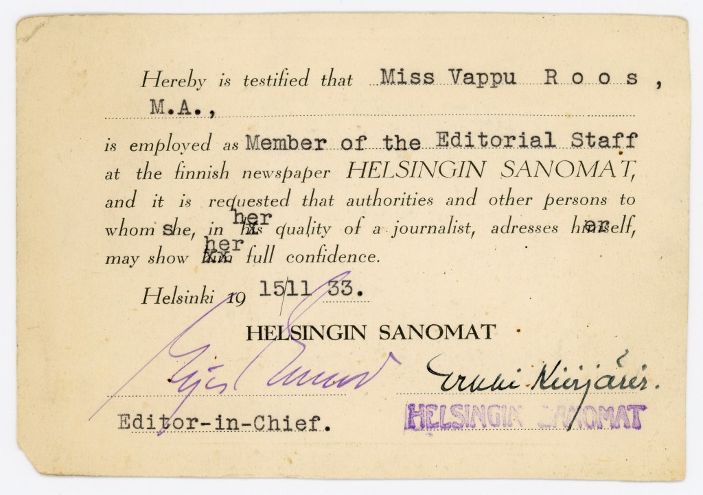 Omassa mielessäni tässä ovat keskenään ristiriidassa ikään kuin kaksi tasa-arvoa ajavaa näkökulmaa. Toisaalta toimittajien työtä tulisi arvostaa ja arvioida ehdottomasti sukupuolesta riippumatta, mutta toisaalta tasa-arvon on vaikeaa nähdä täyttyvän, jos vain miehet toimivat toimittajina. Oliko 1900-luvun alkupuolella sanomalehtien toimituksessa sukupuolella väliä ja jos oli, niin miksi?