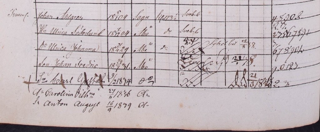 Syntynyt 24. ja kastettu 28.: Johannes, naisihminen Ulrika Pihlin poika. Luostarinmäki, tontti 169. Kastetodistaja: Gustava Lilja. Kasteen suoritti allekirjoittanut. Turussa 3. heinäkuuta 1833. Johan Pehr Lindholm